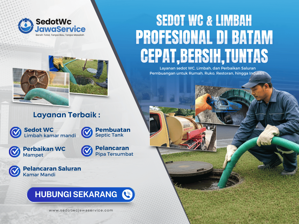 CV Jawa Service hadir sebagai solusi sedot WC Batam terpercaya untuk rumah perumahan ruko restoran hingga industri Kami melayani sedot septic tank sedot limbah dan perbaikan saluran dengan peralatan lengkap tenaga berpengalaman dan pengerjaan cepat tanpa ribet Siap melayani panggilan darurat dengan harga transparan dan hasil kerja tuntas demi kenyamanan lingkungan Anda